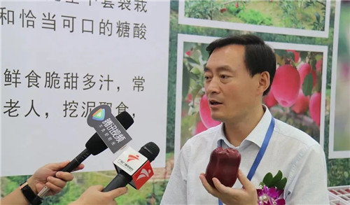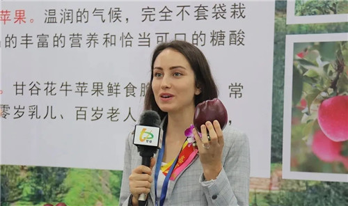 副縣長杜興為廣州市商務(wù)局會展處副處長、廣州商務(wù)會展促進服務(wù)中心副主任陳建莎介紹甘谷蘋果
